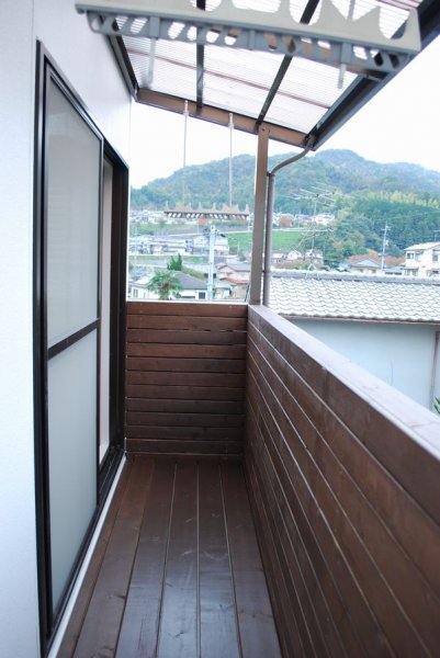 小さなお子さまのために、ベランダには板張りをしたり、
