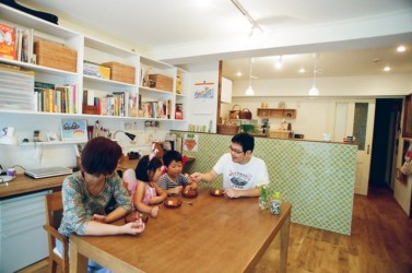 手に届く場所にぜんぶそろってるし、家族が並んで作業できるし。」