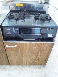 キッチンは既存のものを残しつつ、シンクの戸に足場板を貼りました。