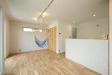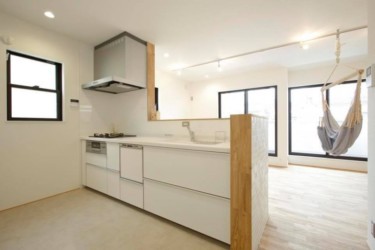 無垢のフローリングに対面キッチン。