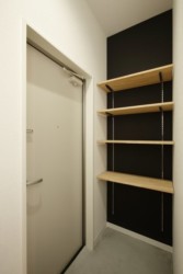 オートロックのエントランスドアを開け、自転車を収納できるアパートメントです。